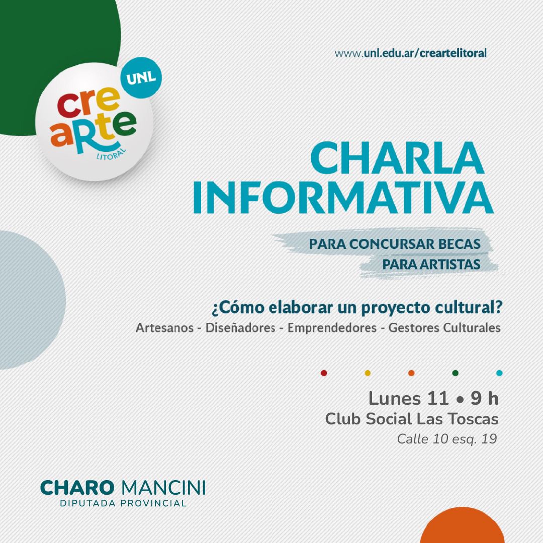 En Villa Ana la charla informativa sobre las becas CreArte Litoral tendr谩 lugar el lunes 11 de agosto a las 11:30 h en el Sal贸n Forestal (25 de Mayo y Uruguay).