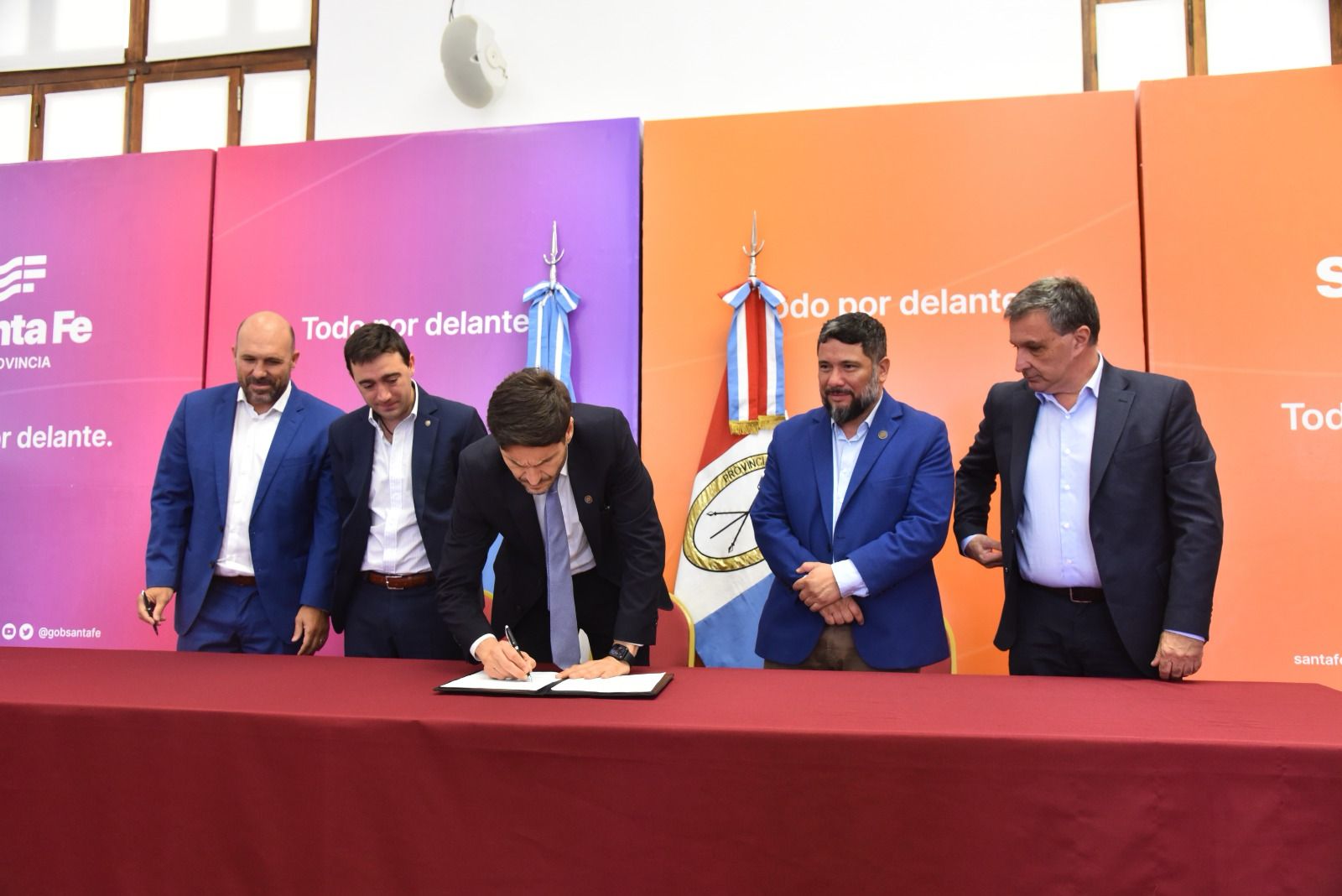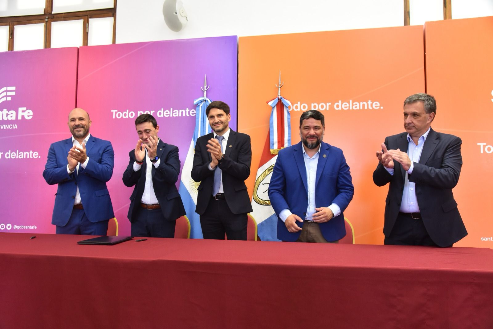Durante la presentación -que tuvo lugar en el Salón Walsh de la sede de Gobierno en Rosario-, el gobernador estuvo acompañado por el secretario de Gestión de Registros Provinciales, Matías Figueroa Escauriza; el director provincial de Registro Civil, Sergio Duarte; los presidentes de los clubes Rosario Central, Gonzalo Belloso y de Newell’s Old Boys, Ignacio Astore; entre otras autoridades.