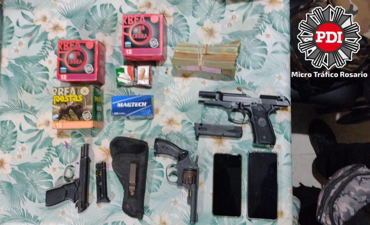Los procedimientos fueron realizados este miércoles por la Policía de Investigaciones y grupos tácticos de la Policía de Santa Fe en barrio Emaús, zona noroeste de Rosario. Secuestraron tres armas de fuego, municiones, marihuana, celulares y más de ocho millones de pesos. Seis personas quedaron a disposición de la Justicia.