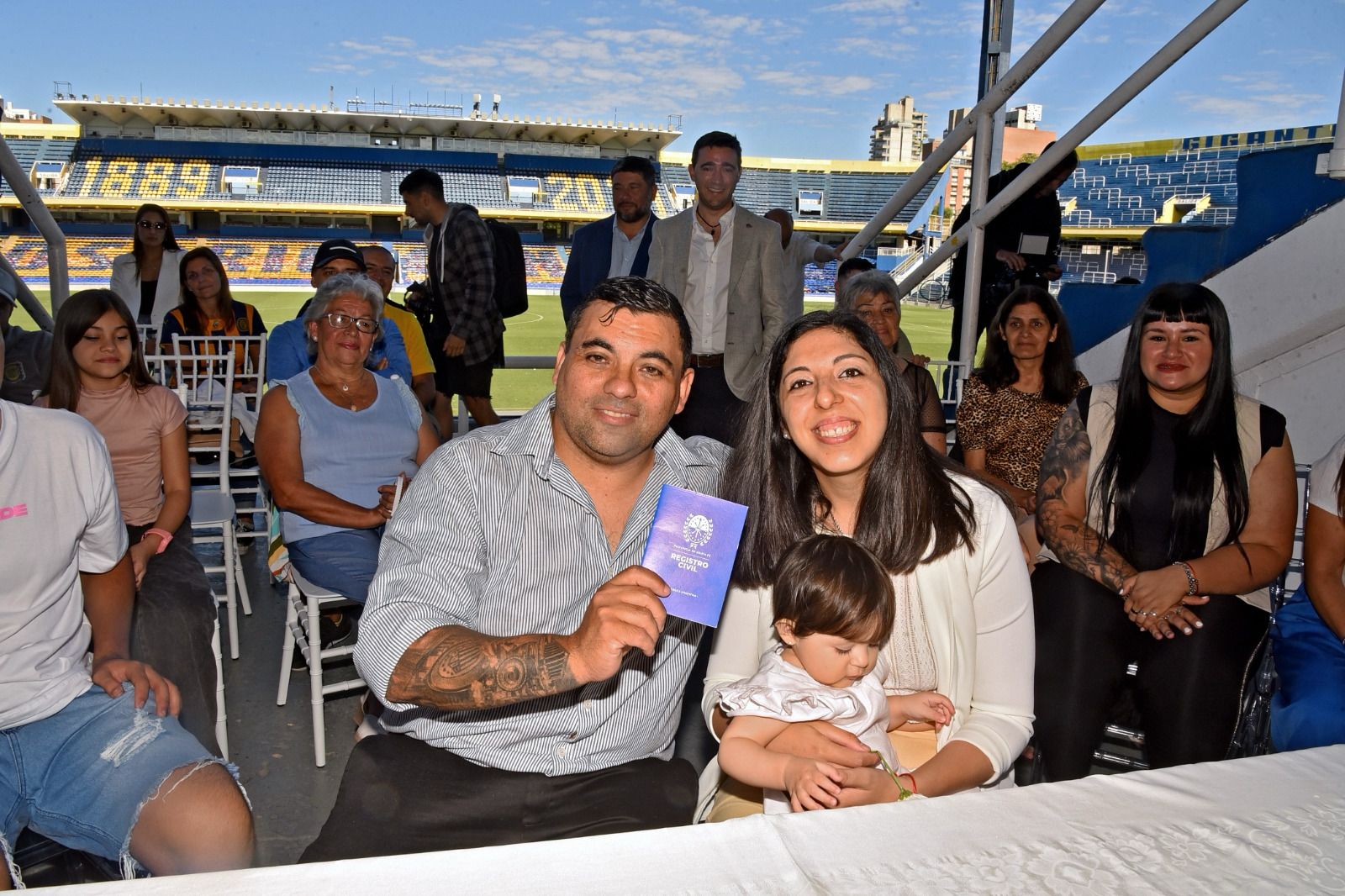 El secretario de Gestión de Registros Provinciales, Matías Figueroa Escauriza, y el director Provincial del Registro Civil, Sergio Duarte, acompañaron este miércoles los primeros casamientos en el Estadio “Gigante de Arroyito”, de Rosario Central, en el marco del programa provincial “Casate con tu Ciudad como Testigo”.