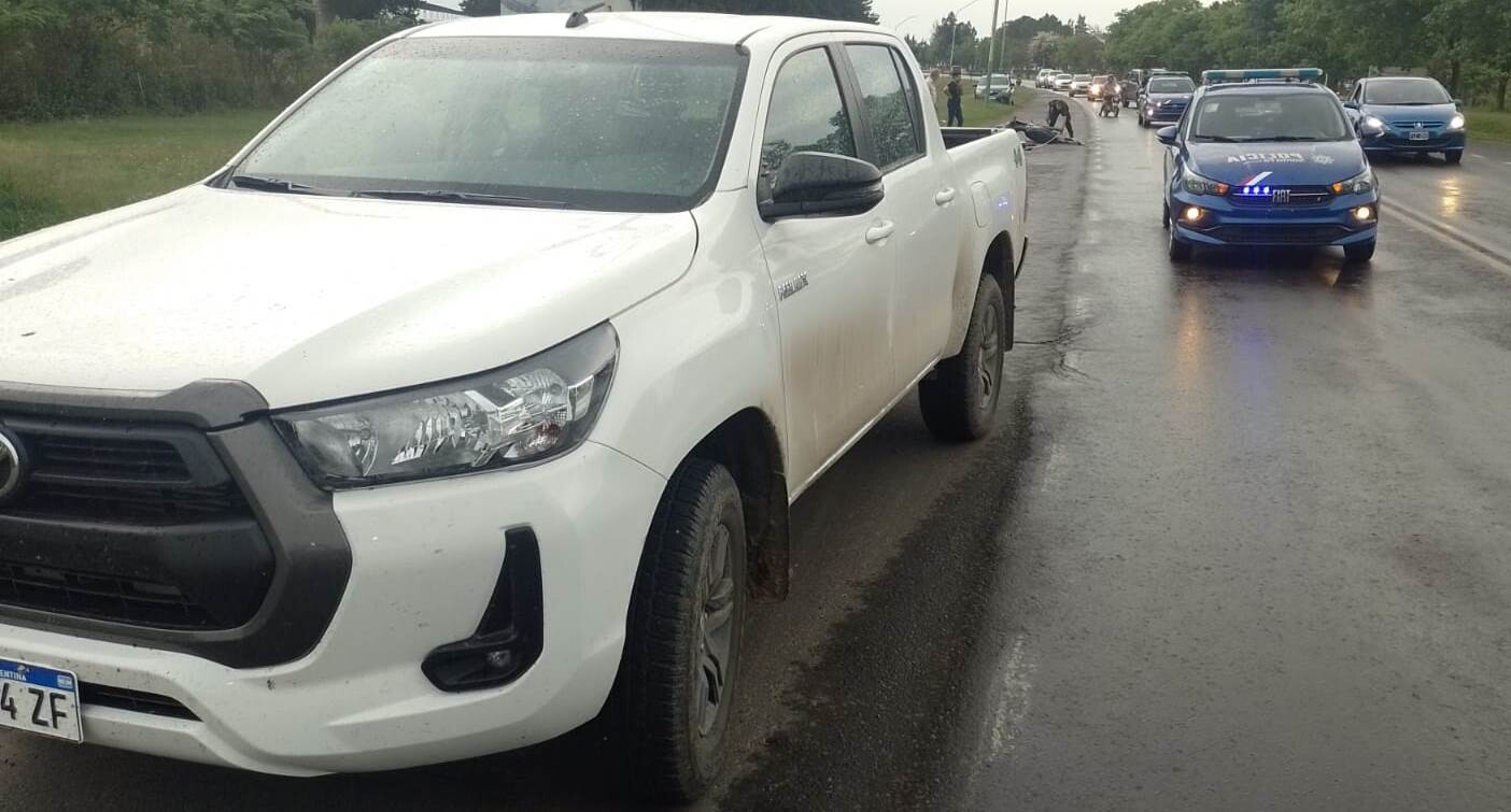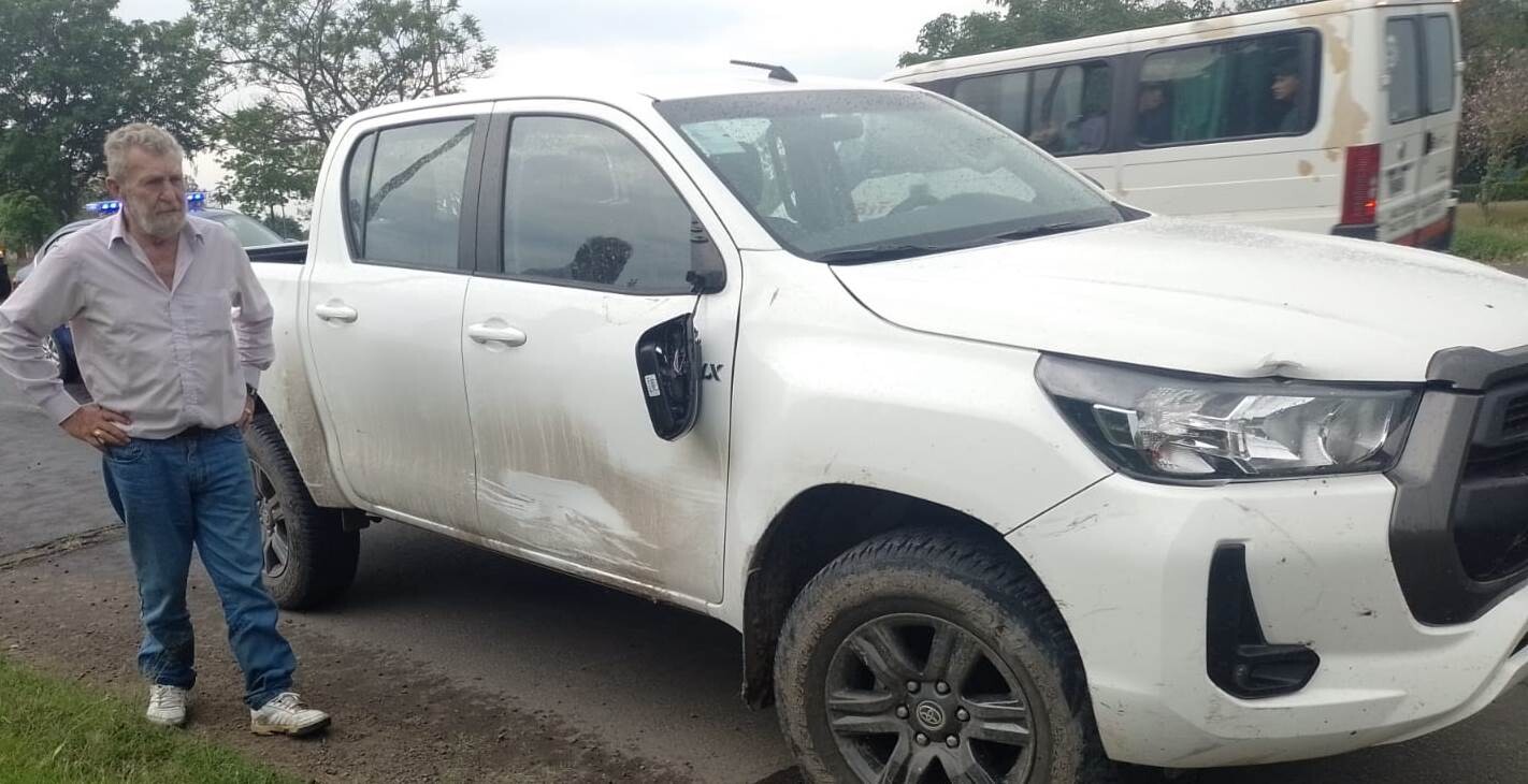 Rápidamente llegaron al lugar dos móviles policiales con cuatro efectivos uniformados que se encontraron con una motocicleta guiada por Marcelo Gariboglio de 49 años de edad, domiciliado en la localidad de San Antonio de Obligado, quien a simple vista padecía una lesión expuesta en el empeine del pie izquierdo; mientras que algunos metros más adelante una camioneta Pick-up 4X4 blanca conducida por René Yacuzzi de 69 años de edad, domiciliado en la ciudad de Villa Ocampo.