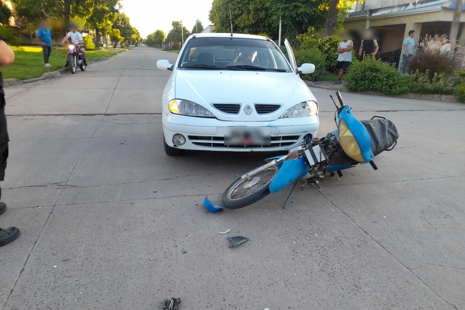 El siniestro ocurrió en la intersección de las calles Dr. Farrán y Güemes, donde por causas que se tratan de establecer se vieron involucrados una motocicleta Corven Energy 110 c.c., conducida por un vecino de la ciudad, y un automóvil Renault Mégane, guiado por un hombre mayor de edad, también domiciliado en esta localidad.