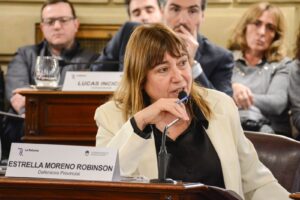 En el recinto de la Cámara de Senadores, el primer encuentro de la mañana fue con integrantes del Servicio Público Provincial de Defensa Penal, encabezados por la defensora titular, Estrella Moreno Robinson, con quienes abordaron intereses y aportes al debate.