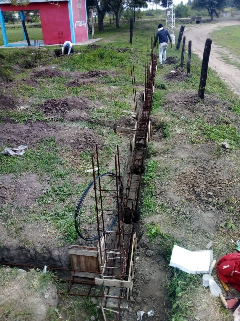 En una superficie de 15 x 5,40 metros se están construyendo los cimientos para dos baños (masculino y femenino) y vestuarios.