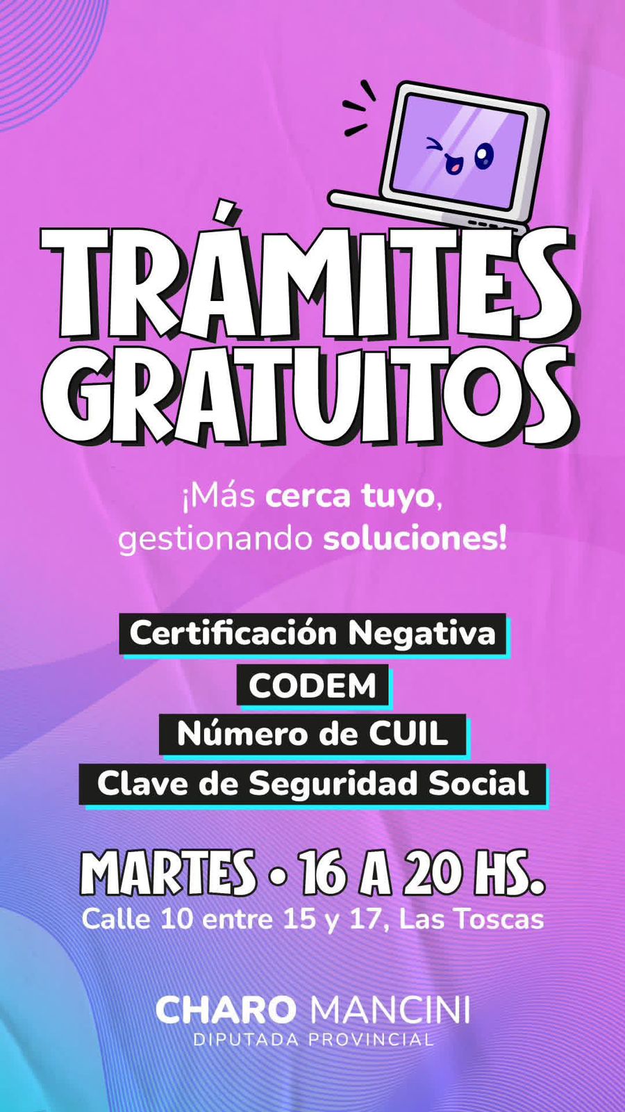 Continúan los trámites gratuitos en la oficina de la Diputada Mancini.