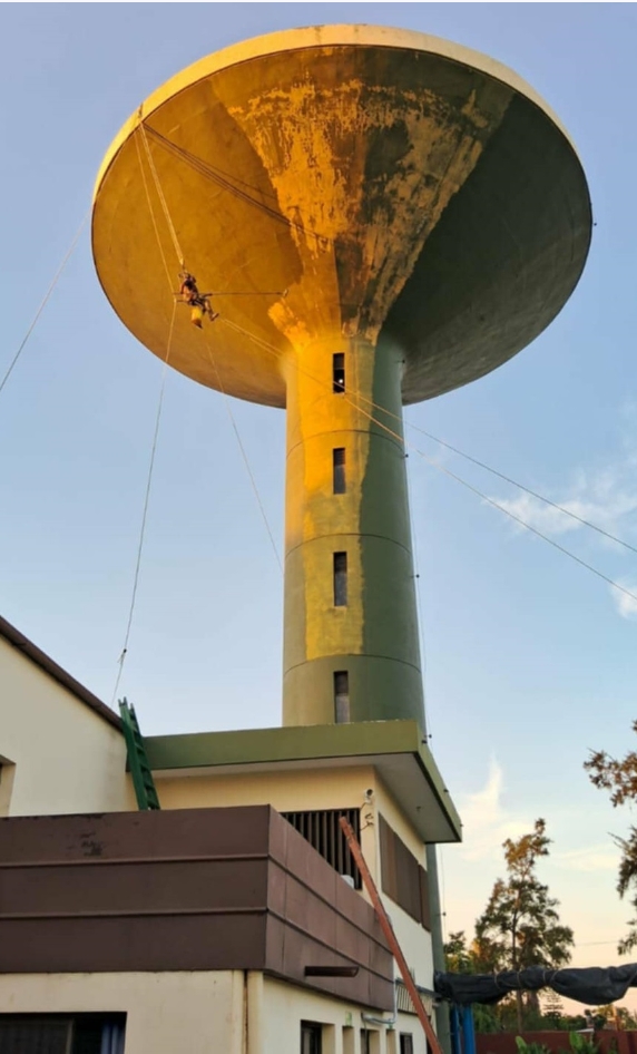 COTELVO Servicios inició los trabajos de reparación integral del tanque elevado de su planta potabilizadora, a cargo de la empresa Emiliano Castro de la localidad de San Genaro (Santa Fe), que consiste en un hidrolavado completo, refacción y pintura de todo el exterior de la edificación.