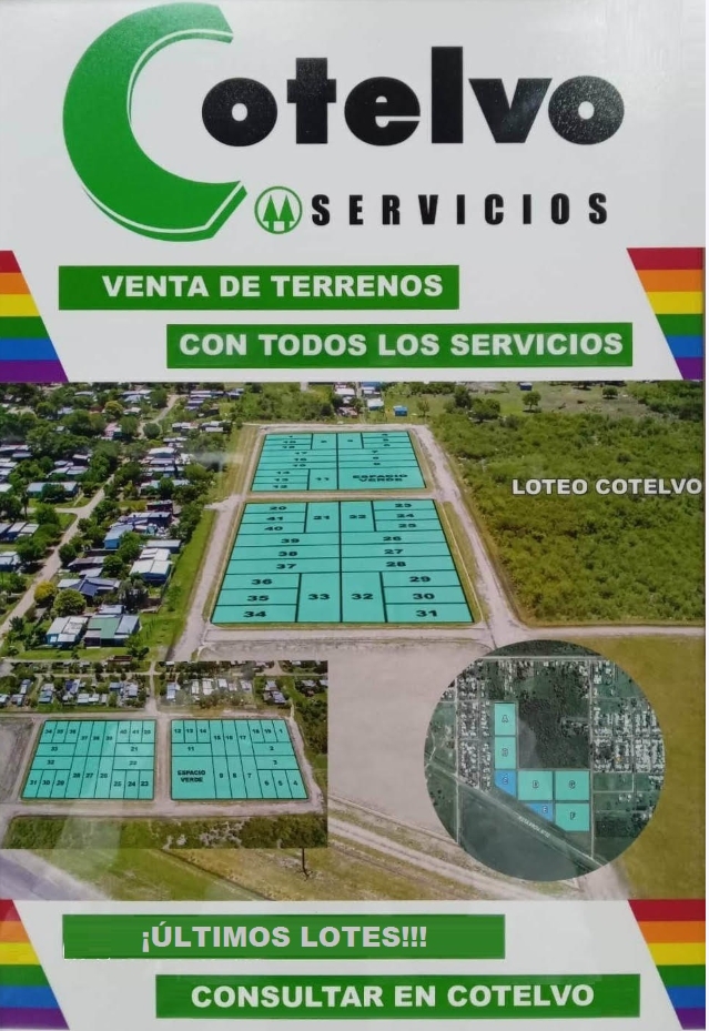 COTELVO Servicios pone a la venta los últimos terrenos de 300 m2 del Loteo COTELVO, con una entrega inicial de $2.000.000 y el saldo en 36 cuotas mensuales a pagar a valor de bolsas de cemento.