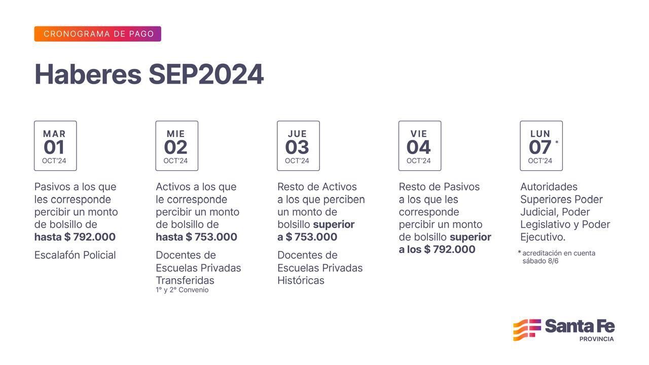 El Gobierno provincial, a través del Ministerio de Economía, informó la liquidación de haberes de septiembre a estatales provinciales, que incluye el incremento acordado en paritarias del 2,45 % para este mes.