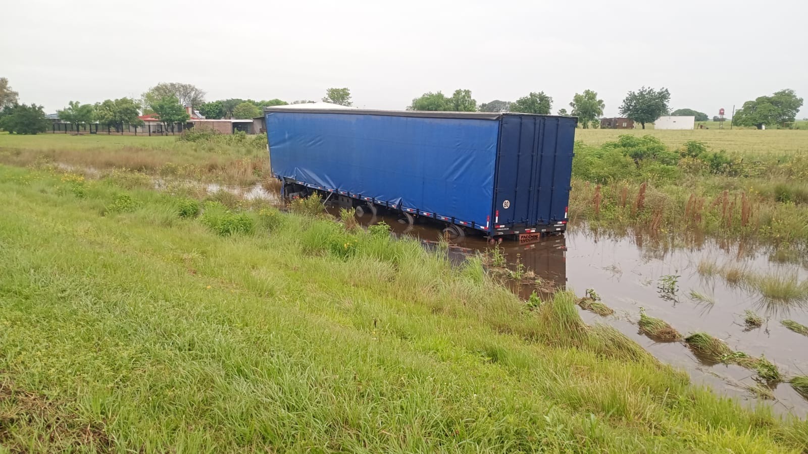 Un camión que transportaba bobinas de papel terminó en un zanjón al costado de la Ruta Nacional N° 11 durante la madrugada de este viernes, tras ser rozado por un colectivo de la empresa Río Uruguay.