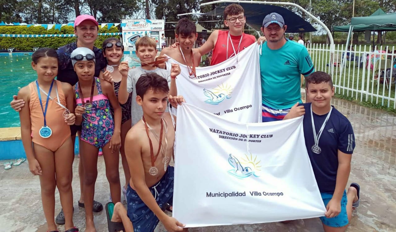La Dirección de Deportes de la Municipalidad de Villa Ocampo informa que la Escuela de Natación del Jockey Club, a cargo del municipio, tuvo una destacada participación en la competencia realizada en el natatorio del Club Banco Nación, obteniendo importantes premios en todas las categorías y estilos.