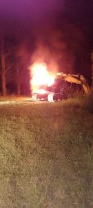 Personal del Destacamento VIII, recibieron llamado telefónico dando cuenta que en el Establecimiento La Norita, a unos 8 km al Oeste por Ruta Provincial 40S, se estaría incendiando una máquina para la construcción.