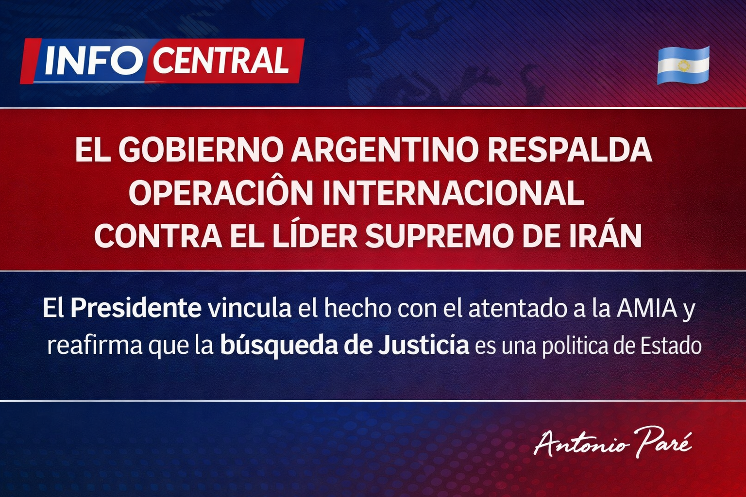 La Oficina del Presidente de la República Argentina emitió este 28 de febrero de 2026 un comunicado oficial en el que expresó su respaldo a la operación conjunta llevada adelante por Estados Unidos e Israel, que según se informó, resultó en la eliminación de Alí Jamenei, Líder Supremo de la República Islámica de Irán.