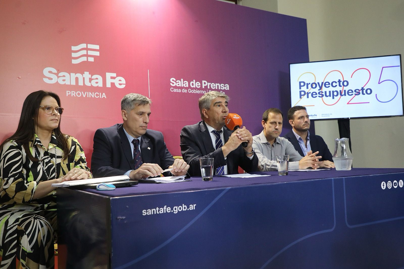 La presentación tuvo lugar en la Casa de Gobierno de Santa Fe, donde los funcionarios estuvieron acompañados por la secretaria de Hacienda, Belén Echeverría; el secretario de Política Económica, Pablo Gorbán; y el secretario de Finanzas, Adriano Maldonesi.
