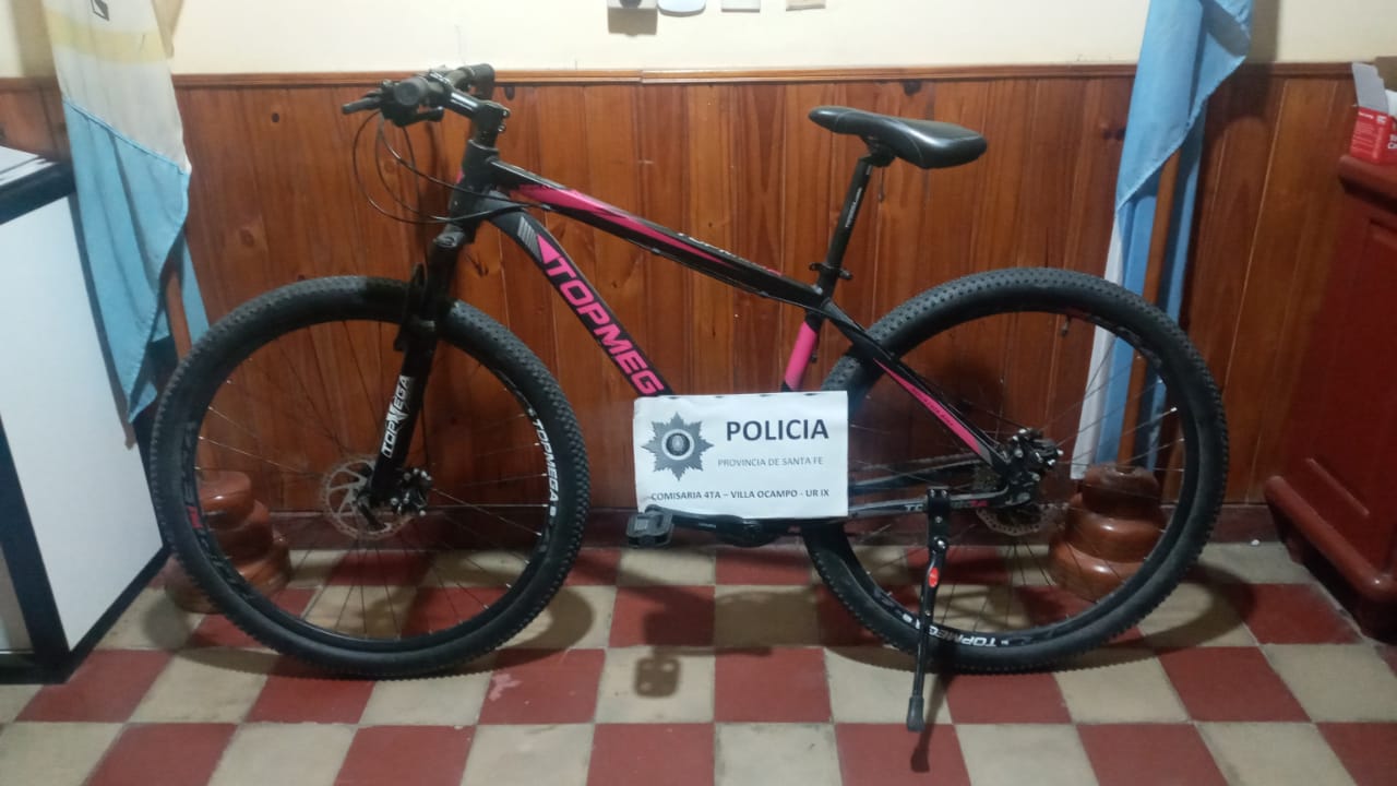 Identificado resultó ser Un hombre, mayor de edad, domiciliado en Rosario. Consultado por acreditación del birrodado TOPMEGA rodado 29, no supo justiciar la propiedad.