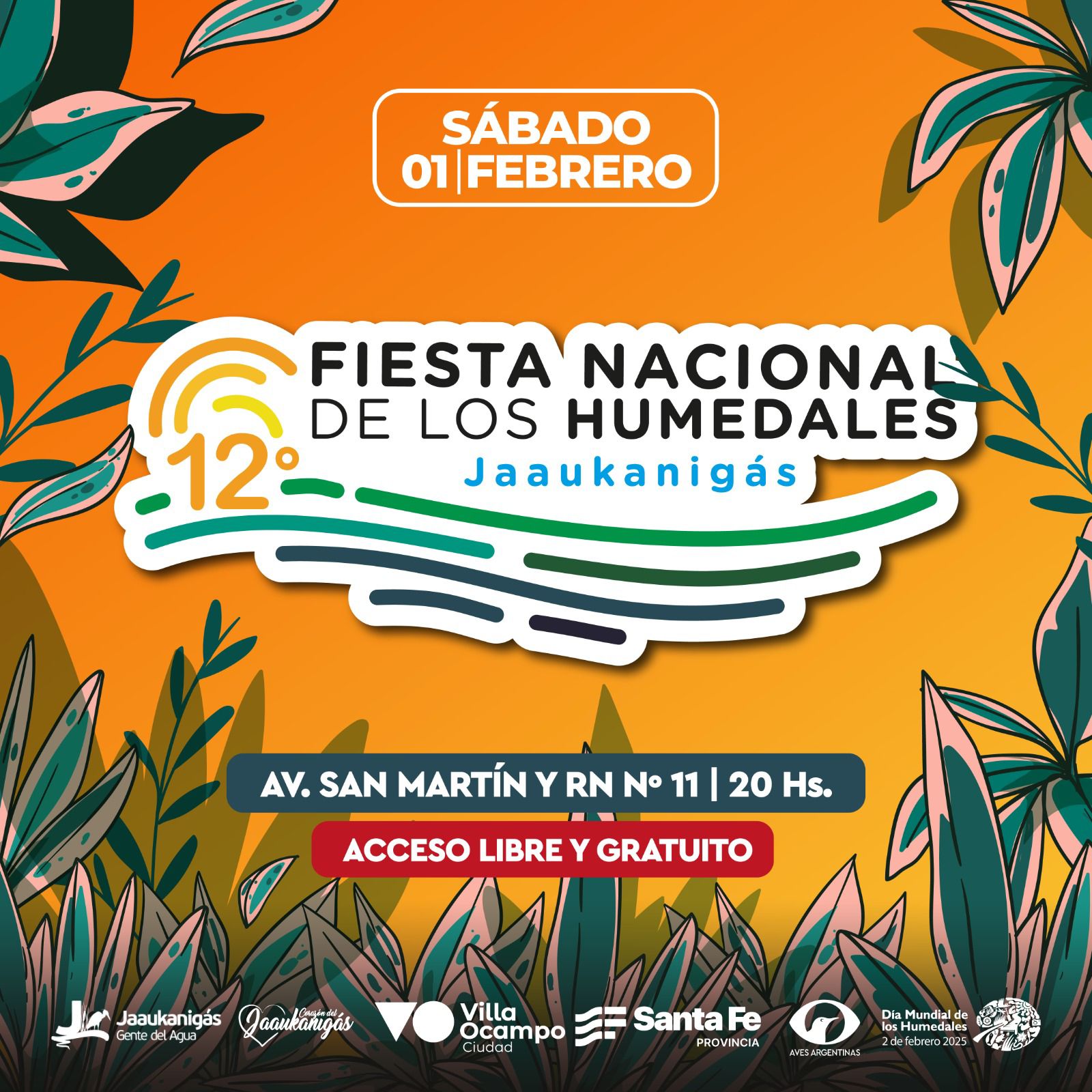 La Municipalidad de Villa Ocampo informa que el próximo 1 de febrero, será la 12º Fiesta Nacional de los Humedales “Jaaukanigás”, encabezando la grilla artística la ganadora de los Premios Gardel, Rocío Quiroz y la conducción especial de Victoria Panozzo.