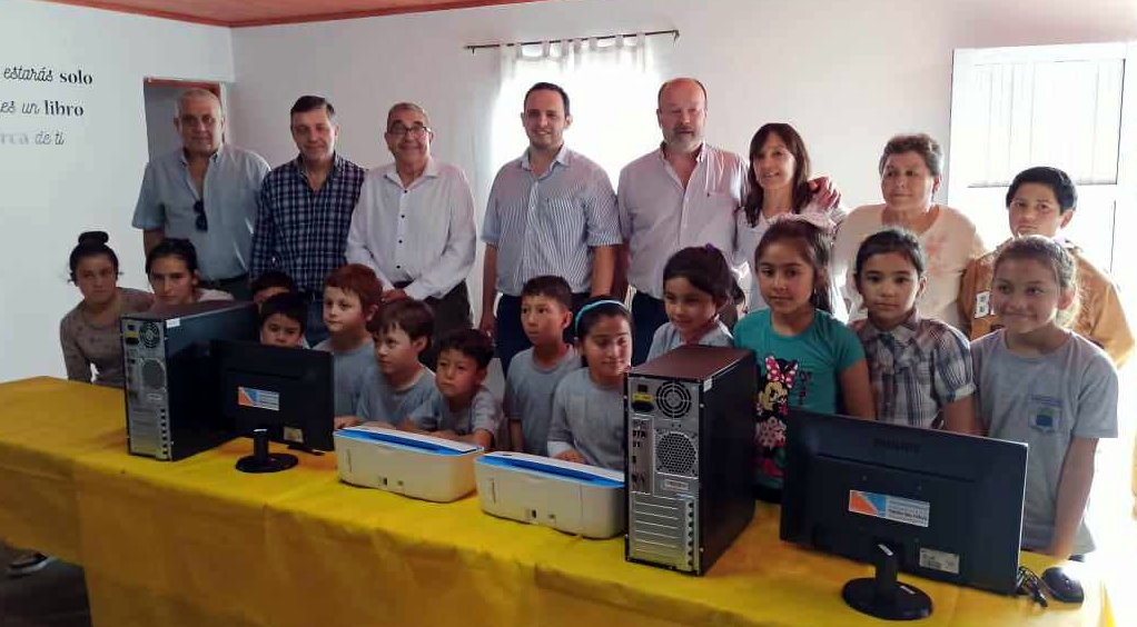 El intendente Enrique Paduán, acompañado por el subdirector de Bibliotecas Populares de la Provincia, Rolando Aranda; el presidente del Concejo Municipal, Cristian Marega; y el secretario de Cultura y Comunicación de la Municipalidad de Villa Ocampo, Guillermo Scarpín, hicieron entrega de dos equipos informáticos completos a la Biblioteca Popular “Campo Bello”, que funciona en el Centro Comunitario del Barrio Itatí (Campo Bello Norte).