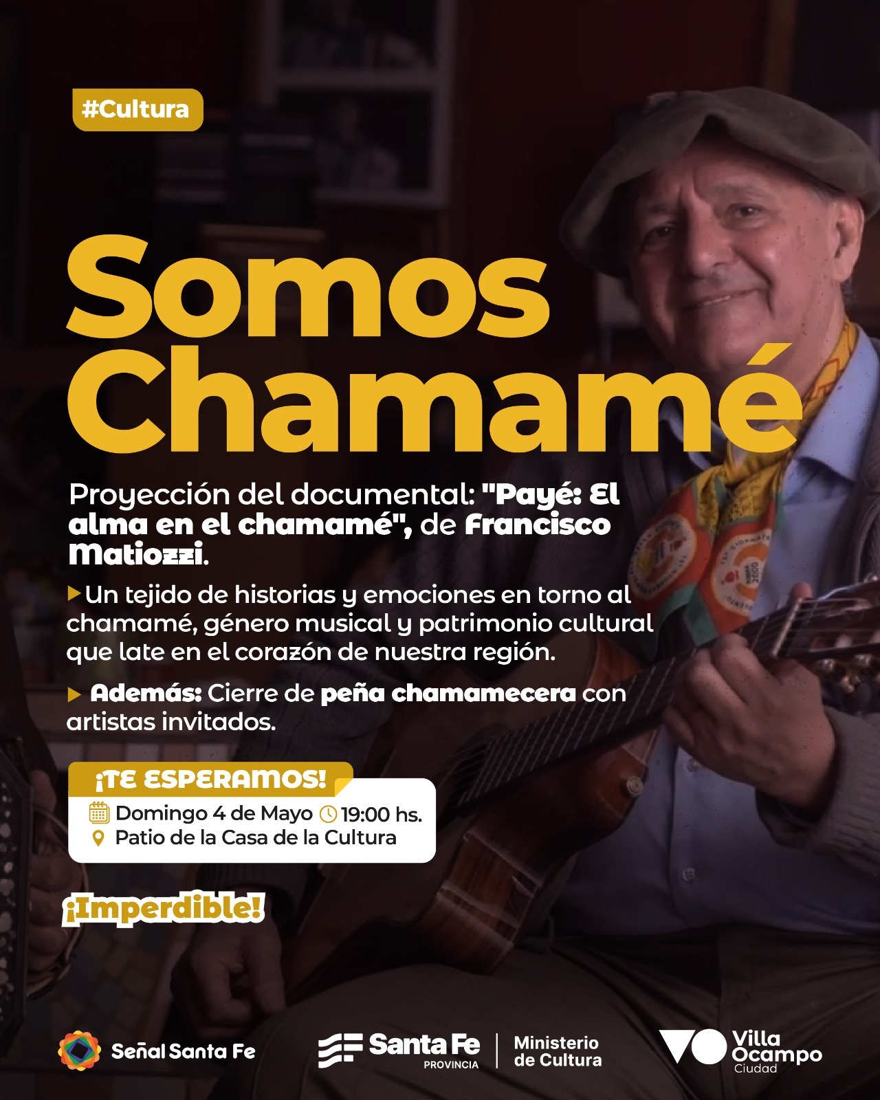 El evento se realizará este domingo 4 de mayo, a partir de las 19:00 Hs. en el patio-jardín de la Casa de la Cultura “Raúl Scalabrini Ortiz”, con la proyección del documental “Payé: El alma en el chamamé”, documental de Francisco Matiozzi, que propone un entramado de historias en torno a esta expresión musical tan arraigada en la identidad litoraleña.