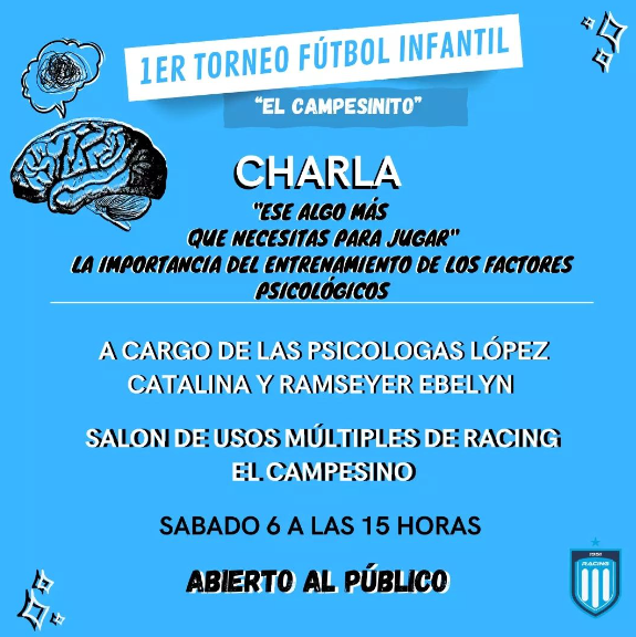 Además del fútbol, el torneo se enriquecerá con actividades de formación. Habrá dos charlas abiertas al público: una sobre nutrición en edades infantiles y juveniles, a cargo de la nutricionista Jesica Sneider, y otra sobre psicología aplicada al deporte, destacando la importancia del entrenamiento en los factores psicológicos. “Logramos que sean abiertas al público, que es algo que también estamos muy contentos de poder brindarle a toda la sociedad este espacio de crecimiento”.
