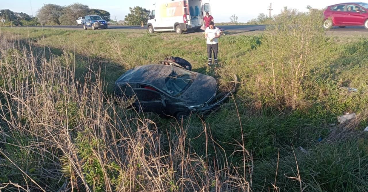 Un automóvil Chevrolet Onix color gris, que se desplazaba de sur a norte con destino a la provincia del Chaco, volcó por causas que aún se tratan de establecer.