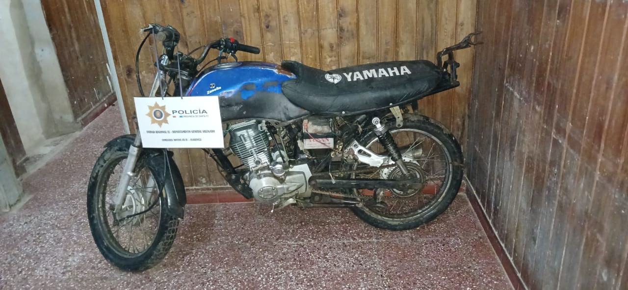Personal de la Comisaria IX UR IX, recupero una motocicleta de marca Zanella 150 cc, color azul y negra, sin dominio visible, con la faltante de luces delanteras y traseras, circunstancias en que realizaban patrullaje preventivo por calle San Martin, continuación camino a colonia Urdaniz, aproximadamente a 800 metros hacia cardinal Oeste de la Ruta Nacional 11, proceden al secuestro preventivo de la misma, resultando ser propietario el ciudadano de 43 años de edad, domiciliado en calle Islas Malvinas S/N de esa localidad, quien había radicado la denuncia en fecha 01/04/2024.