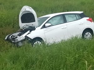 Las Garzas: Un vecino de esa localidad perdió el control de su automóvil y terminó despistando.