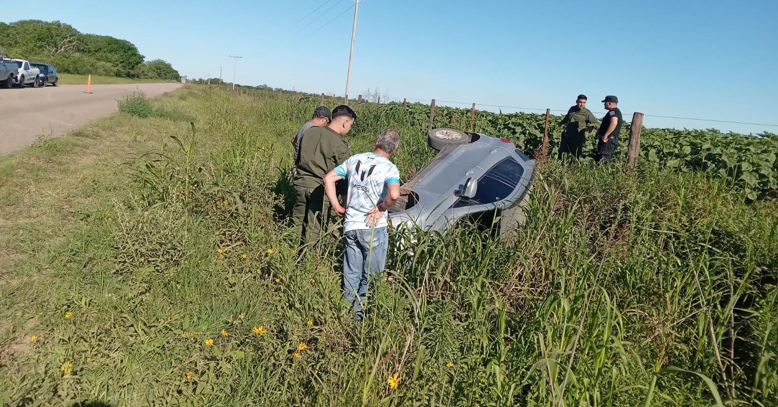 Por causas que aún se tratan de establecer, un automóvil Ford Escort color gris perdió el control y volcó sobre su lateral izquierdo, quedando en un zanjón al costado del camino. El vehículo era conducido por una mujer mayor de edad, quien manifestó haber podido salir por sus propios medios.