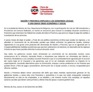 Nación y Provincia deben tomar conciencia del daño que estas medidas oportunistas generan en los gobiernos locales, y como esta crisis financiera y económica a la que nos están empujando impactará directamente no solo en los empleados, si no también, y de manera mucho más compleja, en aquellos sectores sociales que tienen como primera y última línea de apoyo a nuestra gestión local.