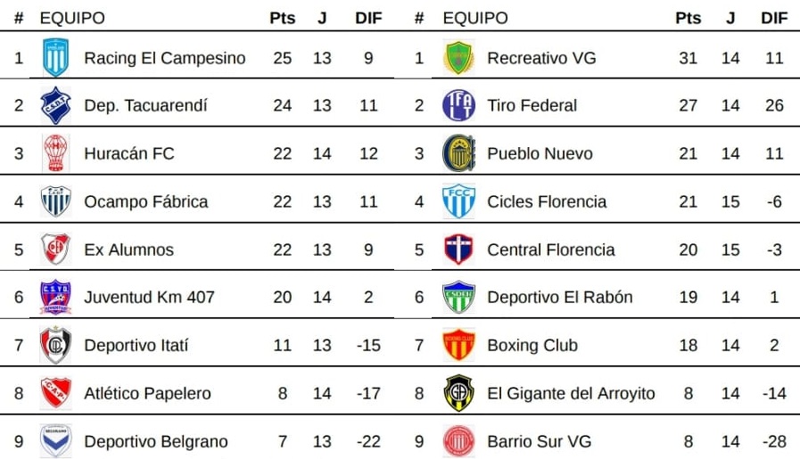 Por su parte, la Zona Norte no se quedó atrás en emociones durante la Fecha 16. Tiro Federal fue el gran protagonista al golear 4-0 a Cicles en Florencia, resultado que les permite mantenerse en la caza del líder, Recreativo Villa Guillermina, que sigue cuatro puntos por delante. Otros resultados destacados fueron el empate 2-2 entre Boxing y El Gigante, la victoria 3-1 de Central Florencia sobre Barrio Sur, y la abultada goleada de Pueblo Nuevo, que superó 5-1 a El Rabón.
