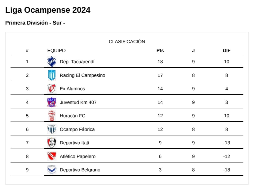 • 16.00hs: Ocampo Fábrica vs. Deportivo Tacuarendí