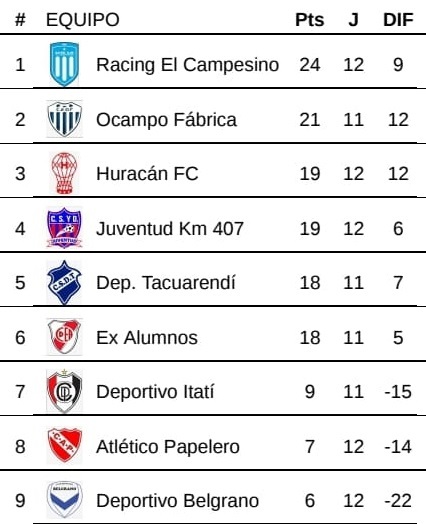 La victoria de Ocampo Fábrica cobra aún más importancia dado el empate entre Racing y Ex Alumnos el día de ayer, lo que deja al equipo Fabril a solo tres puntos del líder Racing El Campesino, situándose como único escolta. En la próxima jornada, Ocampo Fábrica deberá enfrentarse a Huracán en una nueva edición del súper clásico ocampense. Por su parte, Atlético Papelero sigue en la penúltima posición con solo siete unidades.