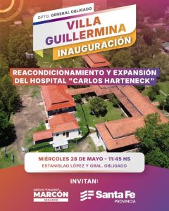 El Hospital Villa Guillermina invita a toda la comunidad a unirse en el acto de inauguración de la obra de reacondicionamiento y expansión de sus instalaciones. El evento se llevará a cabo el miércoles 28 del corriente mes a las 11:45 horas en el hospital.
