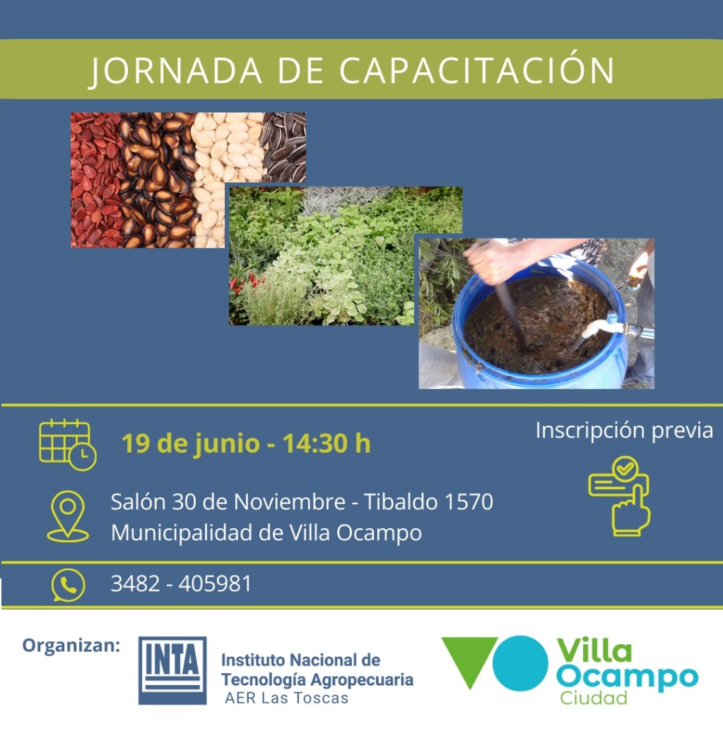 La Municipalidad de Villa Ocampo y el INTA Las Toscas invitan a una jornada de capacitación, a desarrollarse el jueves 19 de junio, a partir de las 14:30 Hs. en el Salón “30 de Noviembre” del Palacio Municipal, donde se expondrán los siguientes temas: