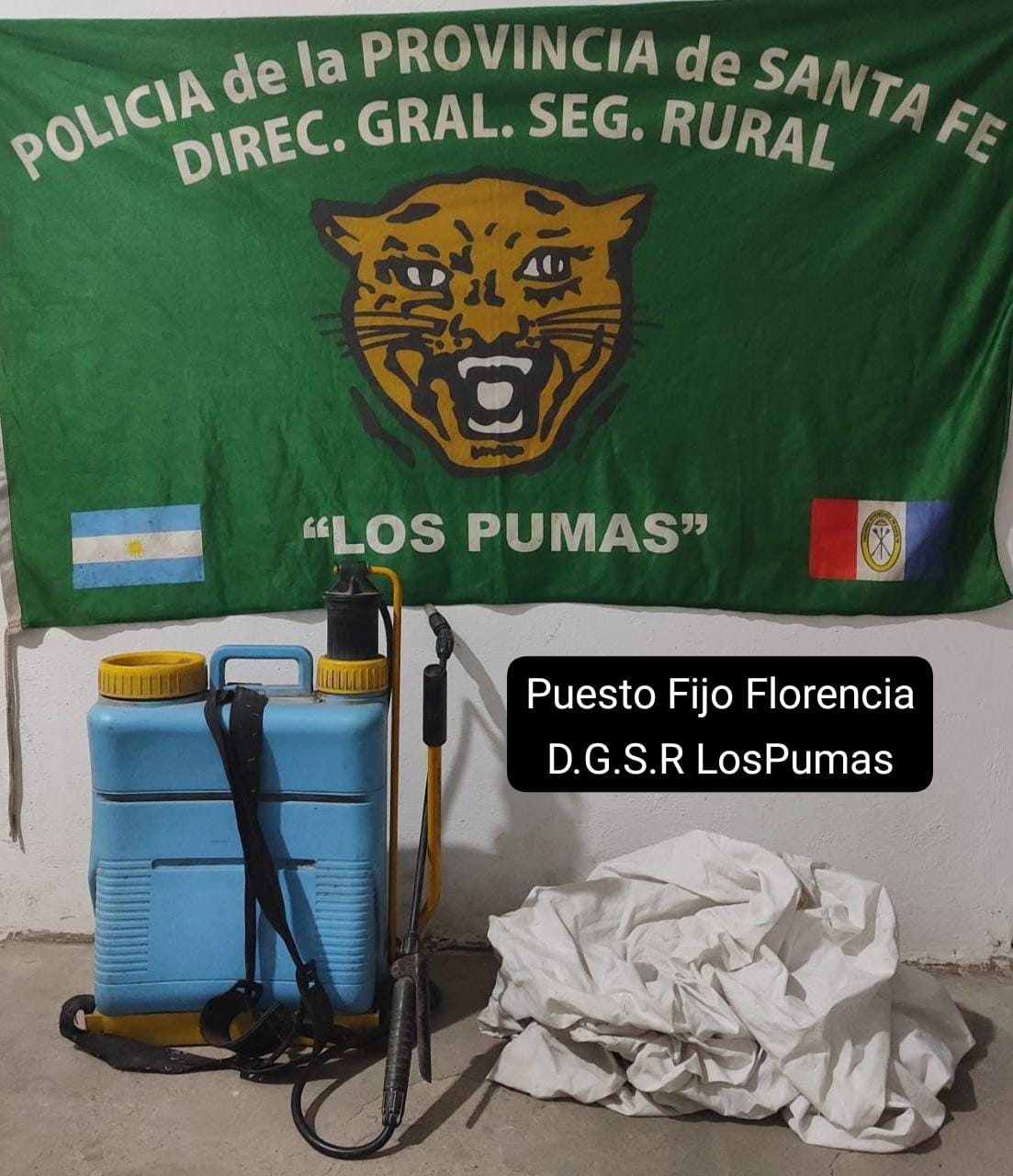 Personal Policial de la Guardia Rural Los Pumas, con asiento en la localidad antes mencionada, se abocaron a tareas investigativas, a raíz de denuncia, por parte del Intendente de dicha ciudad, quien manifestó sobre el ilícito de la sustracción de un tubo de gas, una mochila de fumigar.