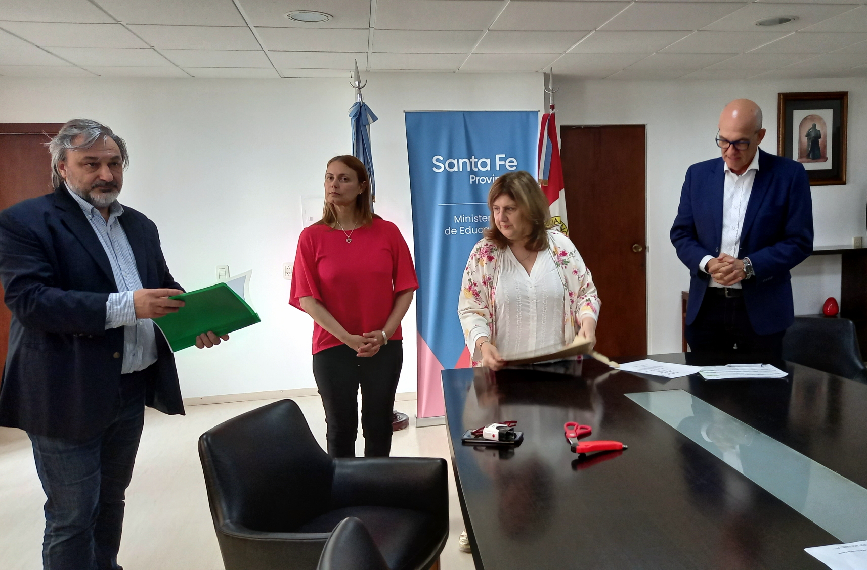 El acto se llevó a cabo en la sala Belgrano del Ministerio de Educación y contó con la presencia de la ministra, Adriana Cantero y del secretario de Educación, Víctor Debloc, junto a directivos y docentes de las escuelas, equipos técnicos de la cartera educativa y representantes de las empresas oferentes.