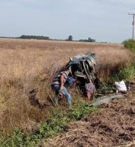 Arribados, en sector cuneta se visualiza un automóvil RENAULT MEGANE, volcado y junto a él Un hombre, Una mujer, y Una menor de edad, domiciliados en zona urbana Tartagal Dpto Vera.