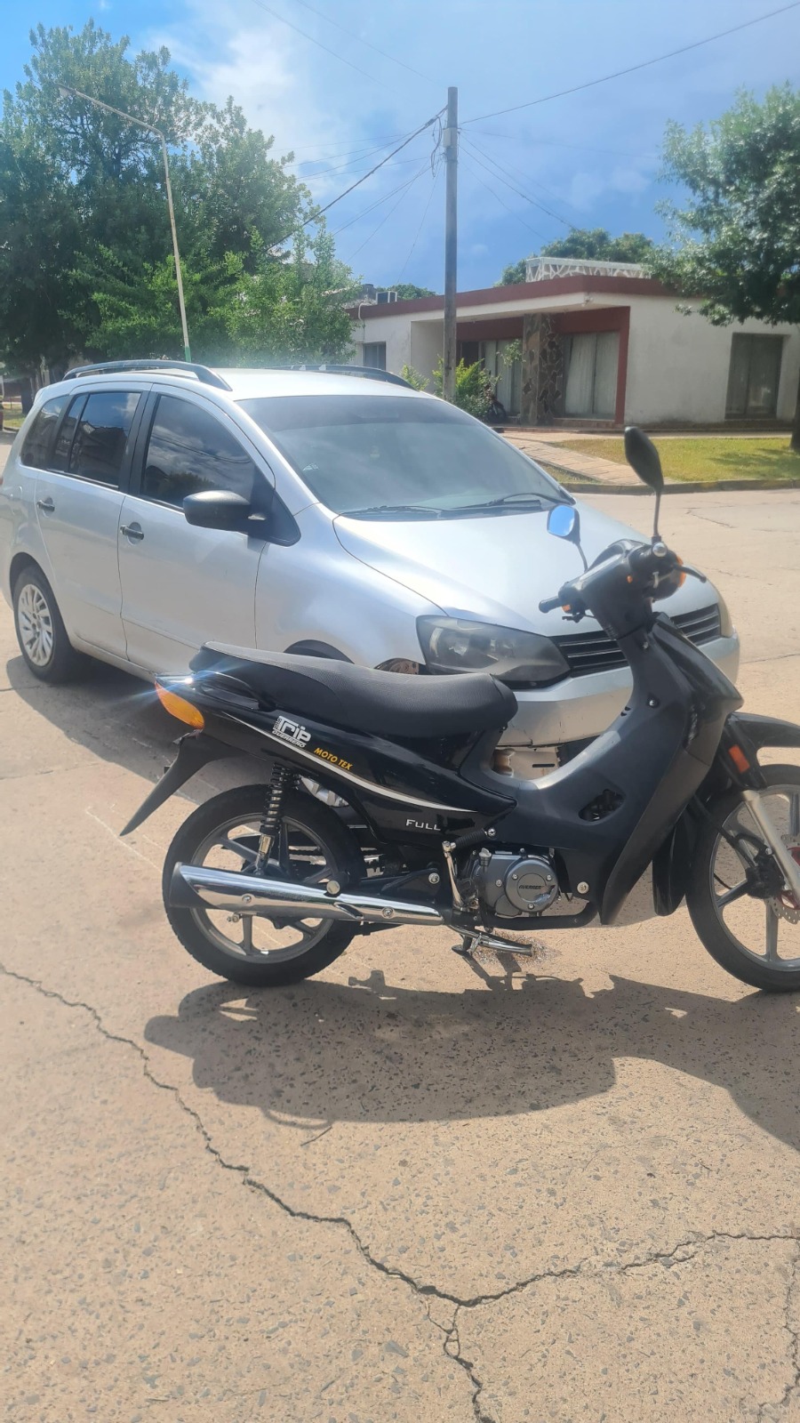 Personal de la Comisaria V UR IX, tomo intervencion en accidente de transito ocurrido en calle 15 y calle 12 de esa ciudad, donde por causas que se tratan de establecer entraron en colision un automovil marca Volkswagen, modelo Suran, conducido por vecino de 32 años, domiciliado en calle 29 entre 14 y 16 de Las Toscas y la motocicleta marca Guerrero, modelo Trip 110 CC, color negro, conducida por hombre de 48 años, domiciliado en calle 6 entre 29 y 31 Barrio Asunta.