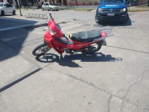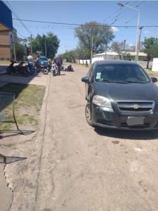 Habría ocurrido un siniestro vial en calle 10 y esquina 21, de esa localidad. Arribados al lugar constatan lo anoticiado, donde por causas que se tratan de establecer entraron en colisión, un  Automóvil Marca Chevrolet, modelo Aveo, color negro, conducido por la ciudadana J.E., 31 años, domiciliada en calle 45 entre Barrio Santa Lucia, Las Toscas y un motovehiculo Marca Jincheng Modelo JC110-19, color roja, con dominio colocado, conducido por ciudadana F.Z., 48 años de edad, domiciliada en calle Antonio Mangini s/n, de la localidad de San Antonio de Obligado, quien circulaba por calle 10 sentido norte- sur.