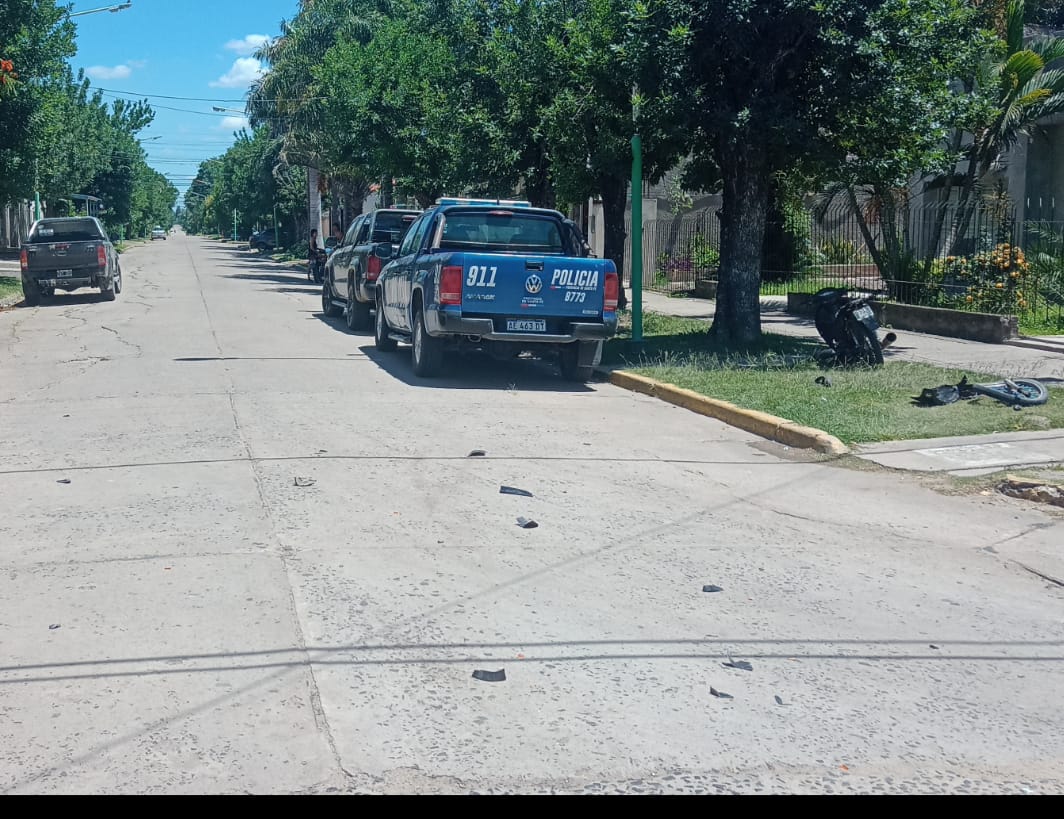 Rápidamente arribó al lugar un patrullero con tres efectivos uniformados, donde observan que por causas que se tratan de establecer entraron en colisión motocicleta marca Appia modelo citiplus color negra dominio 154HRF conducido por Marcelo Raúl Ojeda de 19 años de edad, domiciliado en calle 14 S/N de la ciudad de Las Toscas.