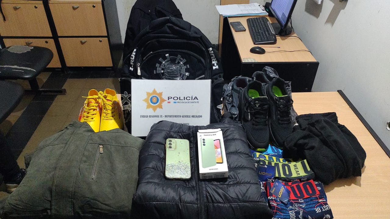 Tras iniciarse las averiguaciones, el personal policial se entrevistó con un hombre mayor de edad, quien expresó haber comprado de buena fe un celular Samsung A14, el cual le habría sido vendido por un vecino. En base a esta información, se procedió a realizar una requisa domiciliaria en Pasaje Público, entre calles 18 y 20, donde se hallaron diversos elementos denunciados como sustraídos: una campera parka marca Kareakey, un par de botines de fútbol 5 marca Grasep, cuatro bóxers marca UOMO y un par de zapatillas marca Gasper. Por tal motivo, fue aprehendido un hombre mayor de edad por el delito de “Robo”.