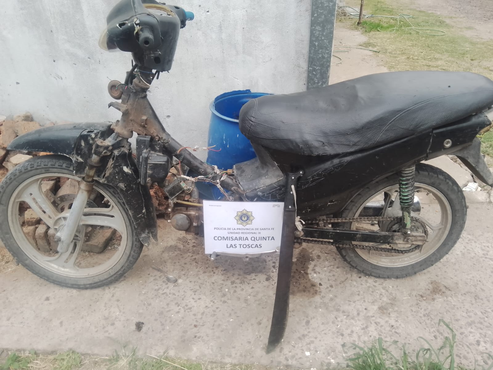 En el lugar se procedió al secuestro y de (01) motocicleta marca ZANELLA 110 cc, sin plásticos, sin dominio visible y de (01) machete cabo color negro.