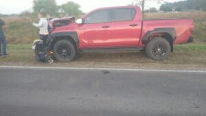 Según testigos presenciales, una motocicleta Yamaha Cripton 110 cc, conducida por Lautaro Fernández, de 23 años, domiciliado en el barrio Santa Lucía de Las Toscas, que circulaba de sur a norte, se cruzó de carril impactando contra una camioneta Toyota Hilux color roja, que transitaba en sentido contrario.
