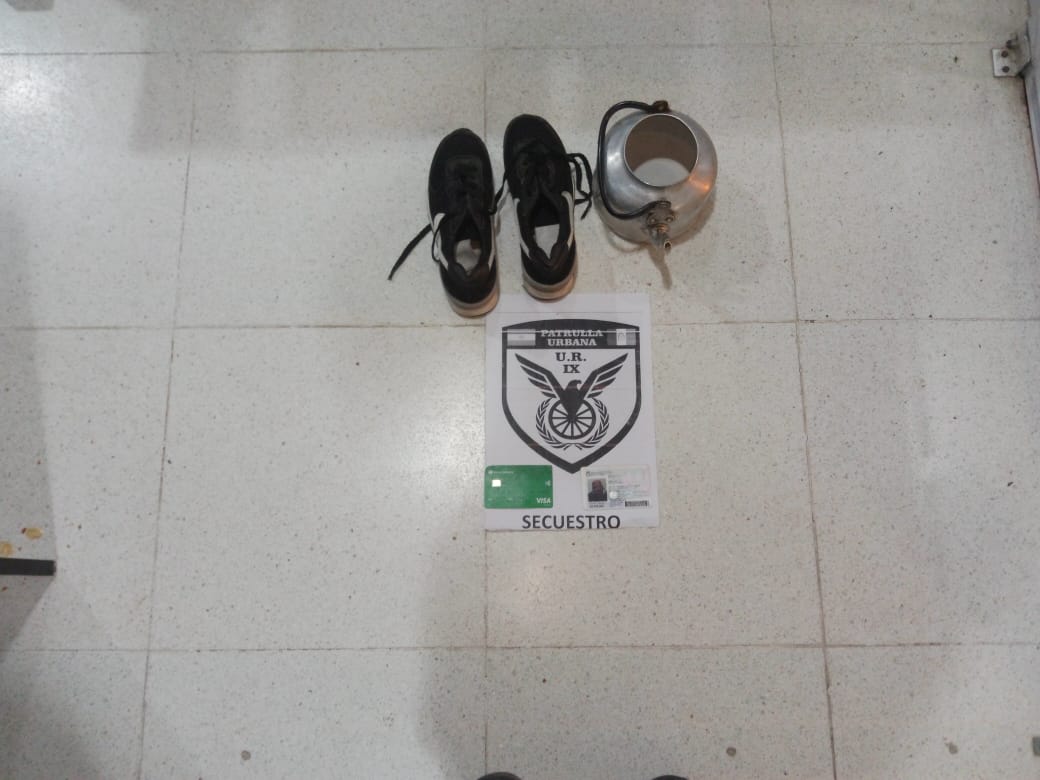 En fecha 29-01-2024, siendo las 00:20 horas, circunstancias en que personal de la Patrulla Urbana Zona Norte, se encontraba realizando patrullaje preventivo por jurisdicción asignada, sobre calle 41 entre 18 y 20 de ese medio, divisan una femenina, circulando de forma pedestre por calle 18 sentido sur norte, pendiendo de sus hombros un bulto, y al notar la presencia policial intentó retroceder, cambiando de dirección, motivo por el cual detiene su marcha en intersección de calle 41 y 18 por personal actuante, misma resulto ser una mujer de 23 años de edad, domiciliada en B° Asunta calle 43 entre calles 08 y 10, de ese medio. Exhibiendo (01) bolsa color blanca, conteniendo en su interior (01) par de zapatillas marcas Nike color negro con vivos blancos, (01) Pava de metal tipo aluminio color plata y agarradera de metal color negro.