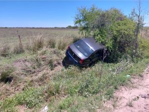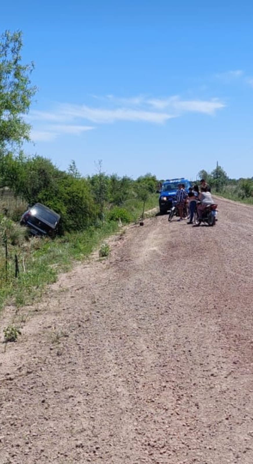 Arribados al lugar constatan lo anoticiado, donde un automovil marca Renault Logan, color gris, conducido por A.M, 19 años de edad, domiciliado en calle 12 esquina 45 esa, manifestó que circulaba en sentido cardinal Este a Oeste del camino rural (ripiado) y en un momento siente un ruido y no lo pudo controlar al auto terminando hacia la cuneta, Resultado de lo acontecido sin lesiones.