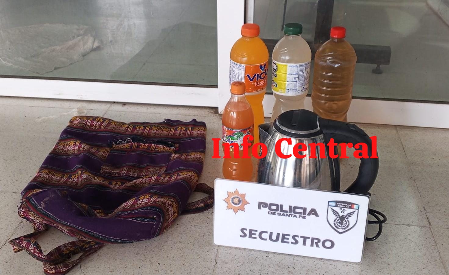 Tras ser identificada, se constató que se trataba de una persona mayor de edad, conocida en la localidad. En su poder llevaba una pava eléctrica, tres botellas de agua saborizada y una botella de gaseosa, sin poder acreditar la procedencia de dichos elementos.