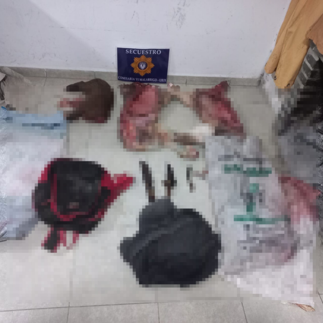 Circunstancias en que personal de la Comisaria VI UR IX, realizaba patrullajes preventivos por sobre Ex Ruta Nac. N° 11, Camino que une con la localidad de Caraguatay divisan a 2 masculinos en una motocicleta, detienen su marcha y proceden a identificarlos, resultando ser dos hombres ambos de 27 años, estos llevaban (03) BOLSAS DE COLOR BLANCO, DE ALIMENTOS BALANCEADOS, (03) CUCHILLOS DE DIFRENETES TAMAÑOS, CABO DE MADERA, DOS CON VAINAS DE CUERO COLOR MARRON, (01) MOCHILA COLOR NEGRA CON ROJO, MARCA XS SPORTS, en el interior de las bolsas y mochila 02 media red de animal vacuno y 01 carpincho, consultado por la procedencia dudaron en dar respuesta por tal motivo se procedió a la aprehensión de ambos y al secuestro preventivo de lo antes ya mencionados, de (01) MOTOCICLETA MARCA HONDA, MODELO WAVE, DE COLOR ROJA CON DETALLES EN NEGRO Y AZUL, SIN DOMINIO VISIBLE, EN REGULAR ESTADO y de (02) CELULARES, UNO MARCA SAMSUNG, DE COLOR GRIS OSCURO, PANTALLA TACTIL, CON UNA FUNDA MATERIAL DE PLASTICO, COLOR NEGRA CON UNA ESTAMPA BLANCA y FLORES EN LA PARTE TRASERA, OTRO MARCA MOTOROLA, COLOR GRIS OSCURO, CON FUNDA COLOR AMARILLO.