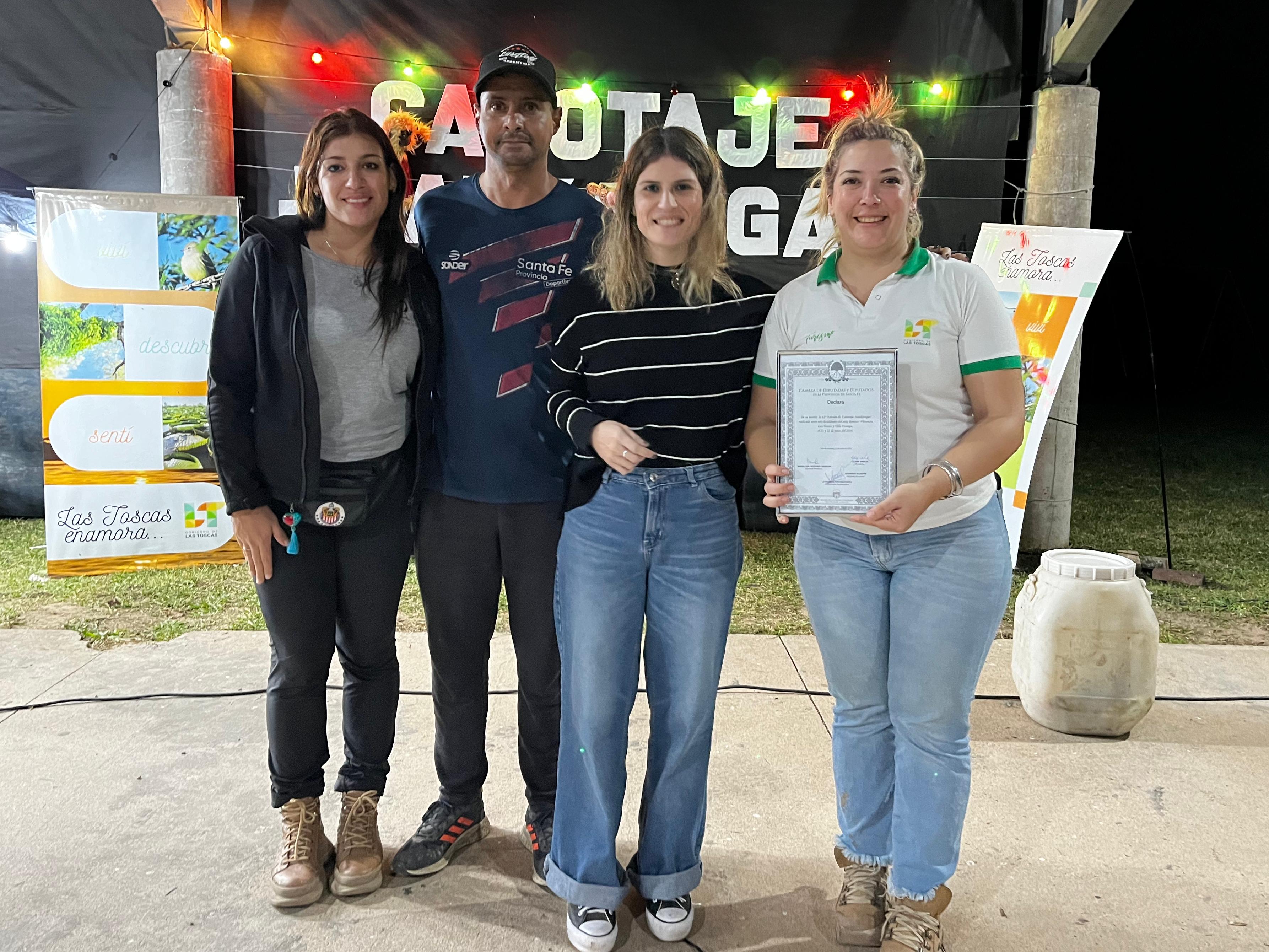 En la noche de peña organizada en el Club Pato Cuá Las Toscas, la diputada provincial hizo entrega de la Declaración de Interés de la Cámara de Diputadas y Diputados de la provincia. También contó con la participación del concejal tosquense Iván Sánchez.