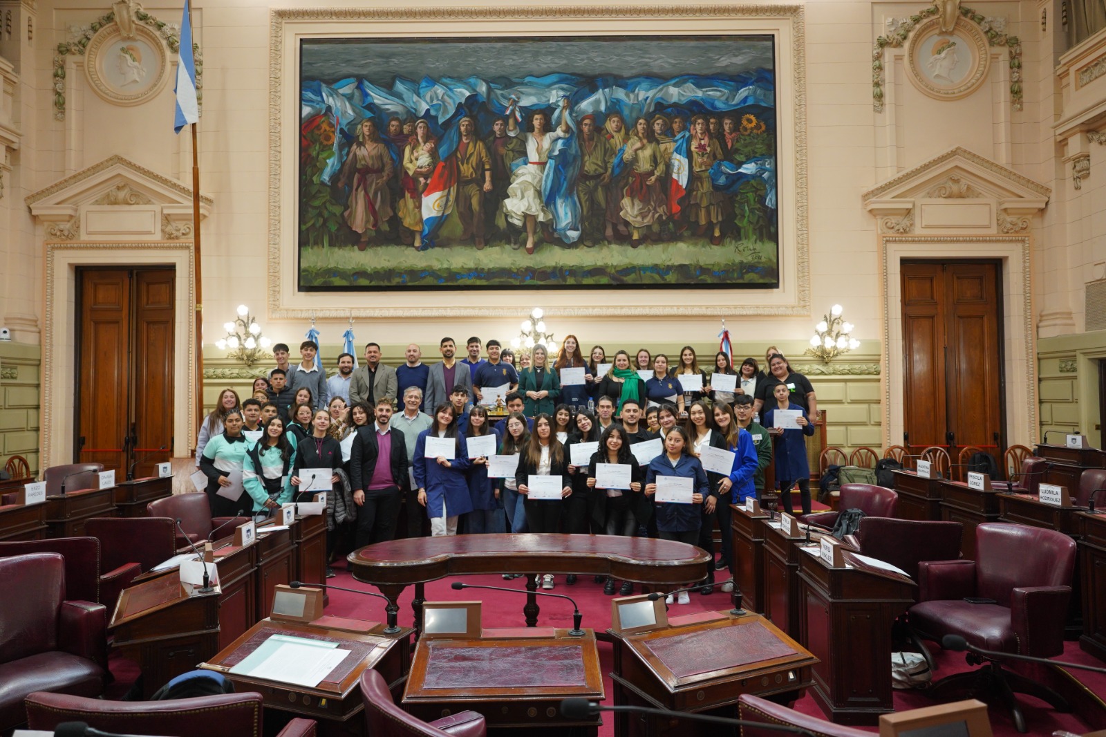 La Diputada Provincial Charo Mancini presidió este martes una sesión histórica para los jóvenes del norte santafesino en el recinto de la Cámara de Diputadas y Diputados de la Provincia de Santa Fe. Allí, 36 alumnos plasmaron sus ideas en textos legislativos de su autoría y debatieron en el marco del Programa “Diputados por un Día”.