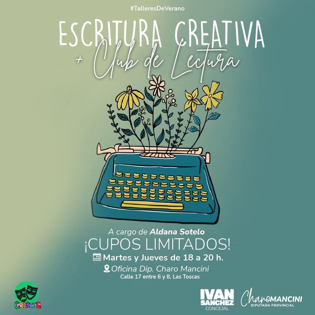 Con el apoyo de la Diputada Provincial Charo Mancini, ya están abiertas las inscripciones para los talleres de verano de escritura creativa y club de lectura, a cargo de la profesora Aldana Sotelo, en Las Toscas. Las inscripciones estarán disponibles hasta completar el cupo.