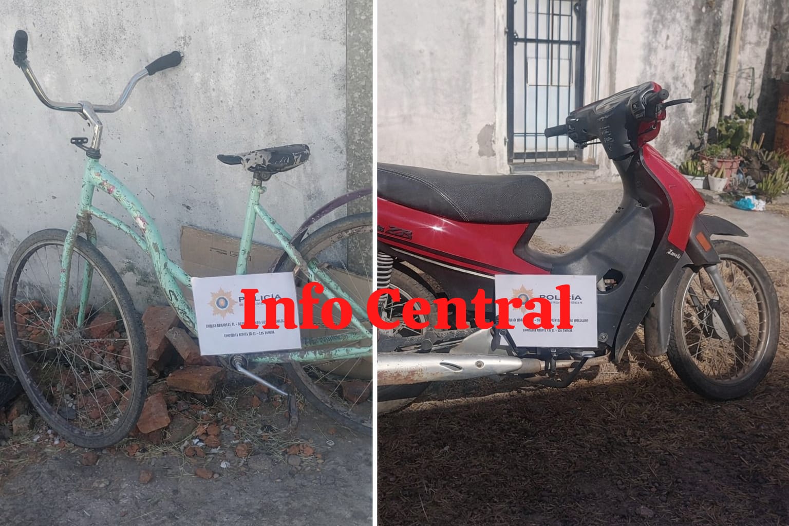Mientras personal de la Comisaría 5ª realizaba patrullaje preventivo por calle 21, entre 10 y 12, observó a una persona que trasladaba simultáneamente una bicicleta y una motocicleta, situación que llamó la atención de los uniformados. Al ser identificado, se constató que se trataba de un menor de 16 años, domiciliado en esa localidad, quien se encontraba en posesión de una bicicleta tipo playera color celeste y una motocicleta Zanella ZB 110 c.c.