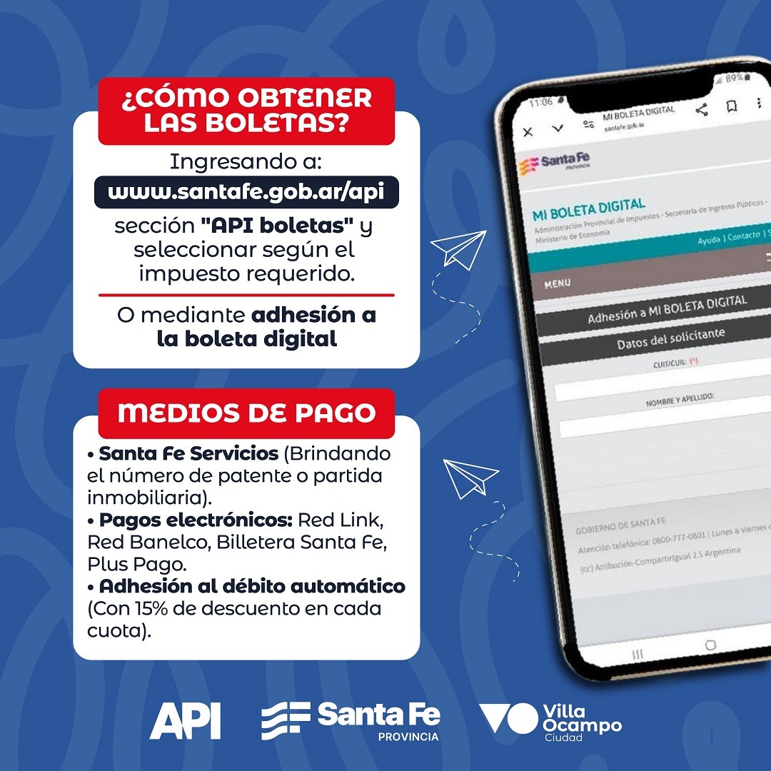 La Municipalidad de Villa Ocampo informa a la comunidad que en el marco del “Programa de despapelización de la Administración Pública” (Decreto Nº 400/24), establecido por la Administración Provincial de Impuestos (API) a partir de la cuota 4 del impuesto inmobiliario y de patente (cuyos vencimientos serán en agosto y septiembre respectivamente), no se imprimirán y repartirán boletas en formato papel.